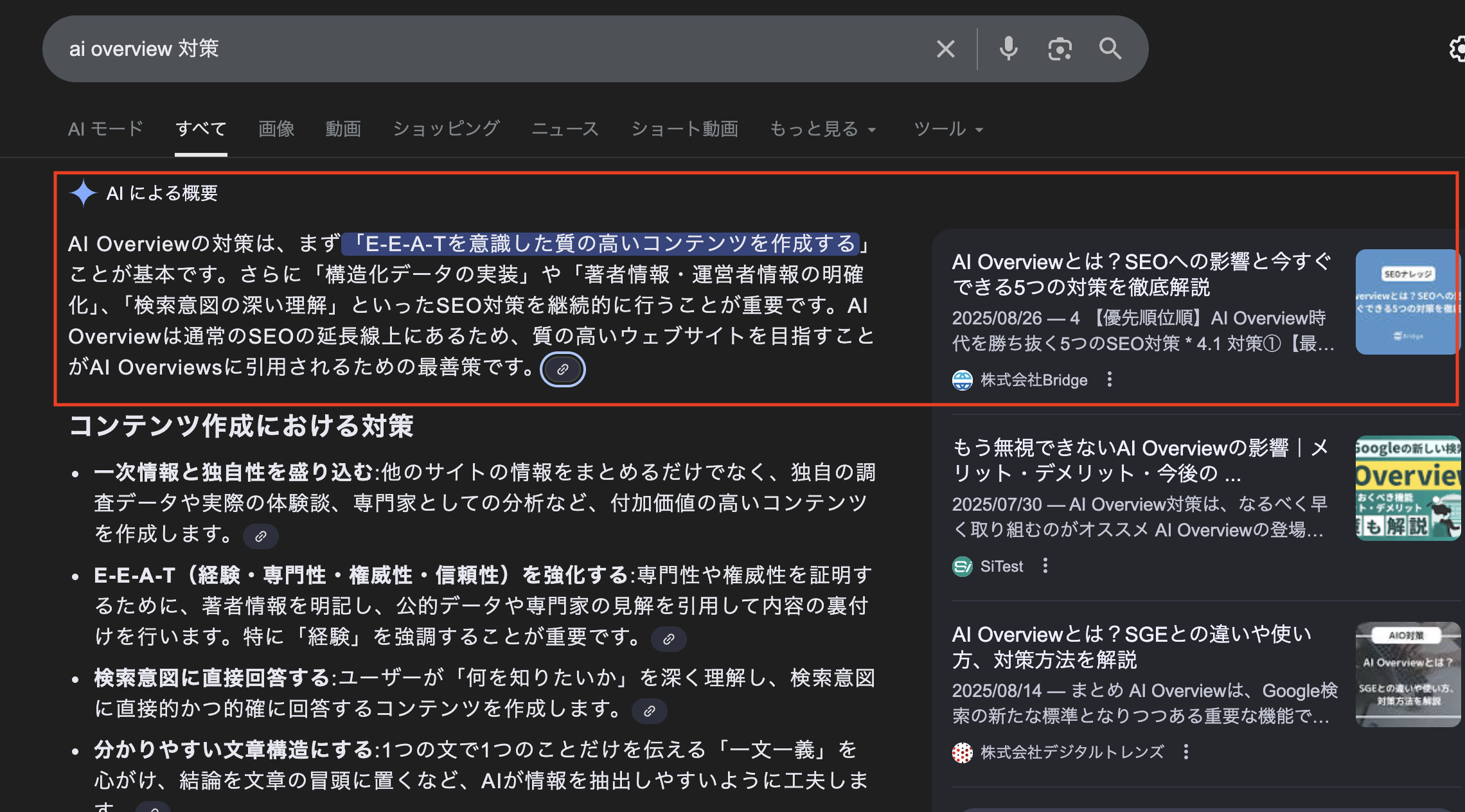 Bridgeでは、記事制作のプロセスにAI Overview対策を取り入れています。